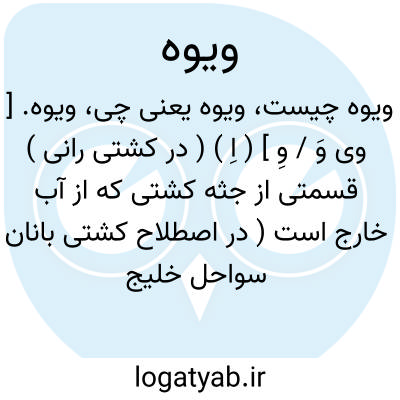 ویوه. [ وی وَ / وِ ] ( اِ ) ( در کشتی رانی ) قسمتی از جثه کشتی که از آب خارج است ( در اصطلاح کشتی بانان سواحل خلیج فارس ). ( سدیدالسلطنة از فرهنگ ایران زمین سال 11 شماره 1-4 ص 146 ).