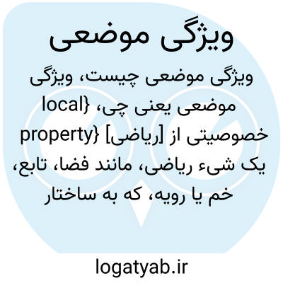 {local property} [ریاضی] خصوصیتی از یک شیء ریاضی، مانند فضا، تابع، خم یا رویه، که به ساختار شیء در همسایگی های نقاطی خاص بستگی دارد