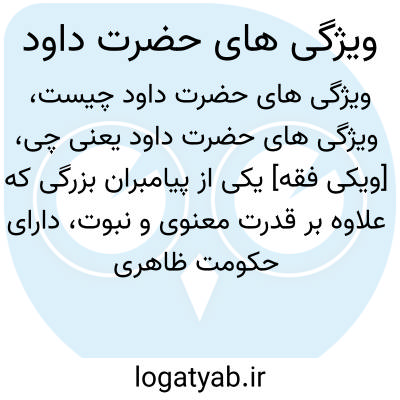 [ویکی فقه] یکی از پیامبران بزرگی که علاوه بر قدرت معنوی و نبوت، دارای حکومت ظاهری وسیع نیز بود، حضرت داود (علیه السّلام) است که نام مبارکش شانزده بار در قرآن آمده است.