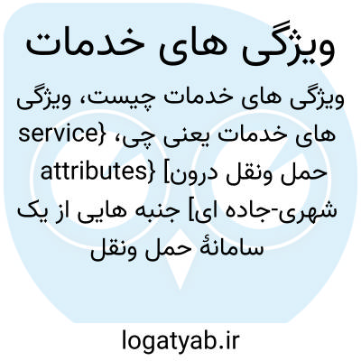{service attributes} [حمل ونقل درون شهری-جاده ای] جنبه هایی از یک سامانۀ حمل ونقل عمومی که در انتخاب مسافر تأثیرگذار است، مانند زمان سفر و قطعیت انجام آن و راحتی و ایمنی و هزینه و میزان شلوغی و احتمال ایستادن مسافر در داخل وسیلۀ نقلیه