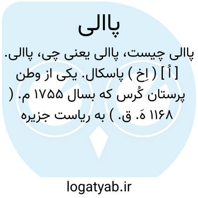 پاالی. [ اُ ] ( اِخ ) پاسکال. یکی از وطن پرستان کُرس که بسال 1755 م. ( 1168 هَ. ق. ) به ریاست جزیره کُرس رسید و جز قسمتی از ساحل آن جزیره را به اختیار اهالی ژِن که آن هنگام سیادت بحری در دست آنان بود نگذاشت و با وسایلی اندک خدمات بسیار انجام کرد ولی بسال 1768 م. ( 1181 هَ. ق. ) از کنت دُ وُ هزیمت یافت و به انگلستان رفت و هنگام انقلاب فرانسه به کُرس بازگشت و انگلیسیان را بدانجا دعوت کرد و بهمین سبب نیز کنوانسیون او را از حقوق مدنی محروم کرد. دولت انگلیس نیز حکومت جزیره کُرس را بدیگری داد، و پااُلی به گمنامی درلندن درگذشت. ولادت وی به سال 1725 م. ( 1137 هَ. ق. ) و وفاتش به سال 1807 م. ( 1221 هَ. ق. ) بوده است.