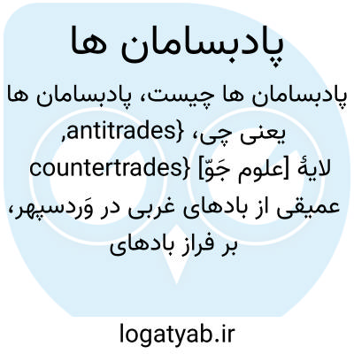 فرهنگستان زبان و ادب {antitrades, countertrades} [علوم جَوّ] لایۀ عمیقی از بادهای غربی در وَردسپهر، بر فراز بادهای بسامان سطحی مدارگان