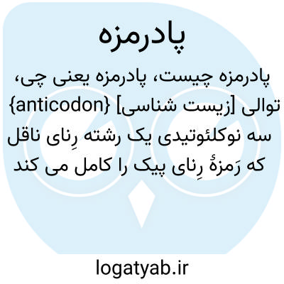 {anticodon} [زیست شناسی] توالی سه نوکلئوتیدی یک رشته رِنای ناقل که رَمزۀ رِنای پیک را کامل می کند