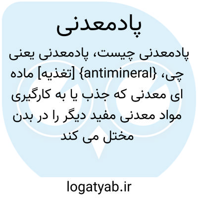 {antimineral} [تغذیه] ماده ای معدنی که جذب یا به کارگیری مواد معدنی مفید دیگر را در بدن مختل می کند