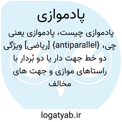 {antiparallel} [ریاضی] ویژگی دو خط جهت دار یا دو بُردار با راستاهای موازی و جهت های مخالف