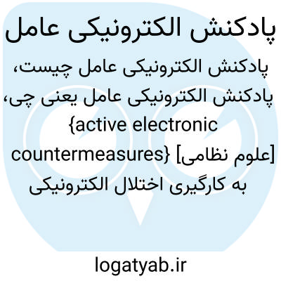 {active electronic countermeasures} [علوم نظامی] به کارگیری اختلال الکترونیکی عامل (active electronic jamming ) برای جلوگیری از استفادۀ دشمن از طیف الکترومغناطیسی یا کاهش میزان آن اختـ. پادکال عامل