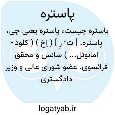 پاستره. [ ت ُ رِ ] ( اِخ ) ( کلود - امانوئل... ) سائس و محقق فرانسوی. عضو شورای عالی و وزیر دادگستری فرانسه. مولد بسال 1756م.1169/ هَ. ق. در مارسی و وفات در سنه 1840م.1255/ هَ. ق.