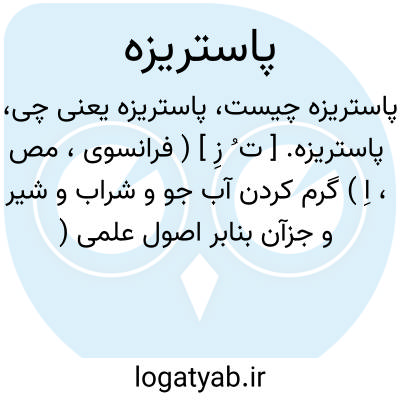 پاستریزه. [ ت ُ زِ ] ( فرانسوی، مص، اِ ) گرم کردن آب جو و شراب و شیر و جزآن بنابر اصول علمی ( پاستور ) برای کشتن جراثیم تخمیری آن. || ( ن مف ) مایعات که بر طبق اصول علمی میکربها و موجودات تخمیری آن از میان رفته باشد.
