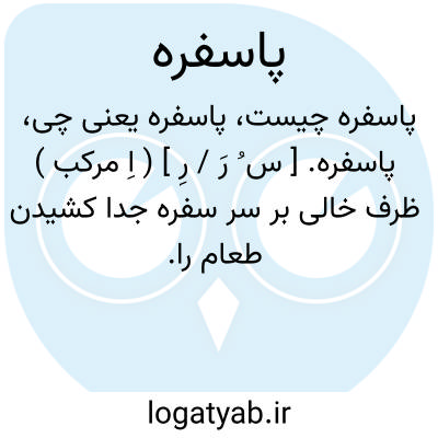 پاسفره. [ س ُ رَ / رِ ] ( اِ مرکب ) ظرف خالی بر سر سفره جدا کشیدن طعام را.