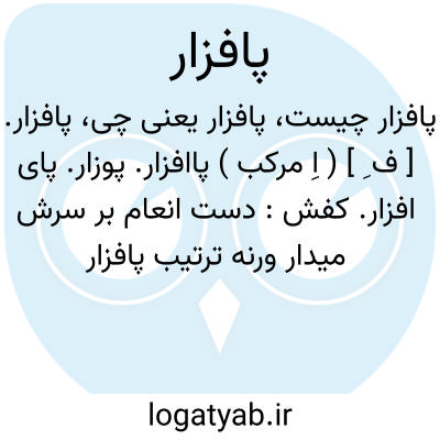 لغت نامه دهخدا پافزار. [ ف ِ ] ( اِ مرکب ) پاافزار. پوزار. پای افزار. کفش: دست انعام بر سرش میدارورنه ترتیب پافزار کند.کمال الدین اسماعیل.چرخ گردون چیست با رای تو دود مشعله ربع مسکون چیست در پای تو گرد پافزار.امیرخسرو.و رجوع به پاافزار شود.