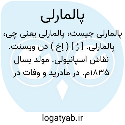 پالمارلی. [ رُ ] ( اِخ ) دن ویسنت. نقاش اسپانیولی. مولد بسال 1835م. در مادرید و وفات در 1896. وی از شاگردان آکادمی مادرید و آکادمی مادرازُ بود و نقاشی بشهر رم آموخت. و در سال 1872 بمدیریت آکادمی اسپانیول در رم منصوب شد. از میان آثار او میتوان پرده های ذیل رانام برد: «کبوتران ونیز»، «تشییع جنازه شهدای سوم مه 1808» و «تصویر آلفونس سیزدهم پادشاه اسپانیا».