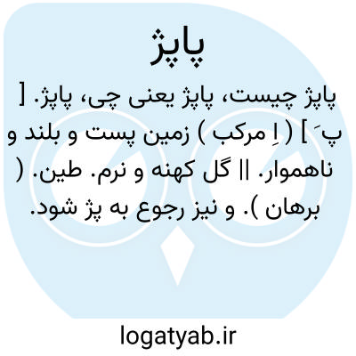 پاپژ. [ پ َ ] ( اِ مرکب ) زمین پست و بلند و ناهموار. || گل کهنه و نرم. طین. ( برهان ). و نیز رجوع به پژ شود.
