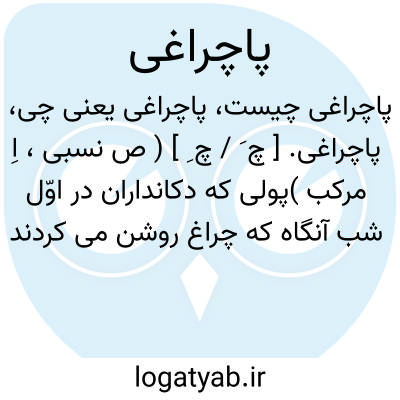 پاچراغی. [ چ َ / چ ِ ] ( ص نسبی، اِ مرکب )پولی که دکانداران در اوّل شب آنگاه که چراغ روشن می کردند بپای چراغ می نهادند و سپس به فقیر میدادند.