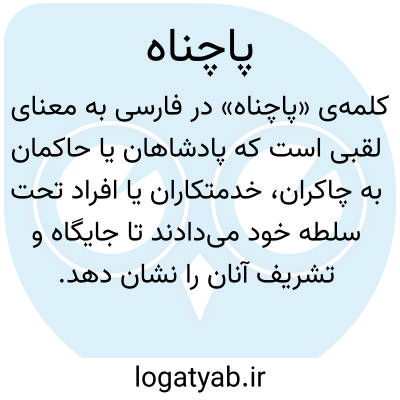 کلمه‌ی «پاچناه» در فارسی به معنای لقبی است که پادشاهان یا حاکمان به چاکران، خدمتکاران یا افراد تحت سلطه خود می‌دادند تا جایگاه و تشریف آنان را نشان دهد. این واژه در متون تاریخی و ادبیات کلاسیک فارسی کاربرد داشته و بیانگر احترام و رتبه‌ای است که به افراد خاص داده می‌شده است. «پاچناه» معادل‌هایی مانند «پاچنامه»، «پاژنامه» و «پاشنامه» نیز دارد که همگی به مفهوم نام یا لقب رسمی برای نشان دادن جایگاه و خدمت فرد نزد پادشاه اشاره دارند. استفاده از این عنوان به نوعی رسم تشریفاتی بود و به فرد شأن و موقعیتی خاص در دربار می‌بخشید. این واژه نشان‌دهنده اهمیت مناسبات اجتماعی و سلسله‌مراتب در دربارها و حکومت‌های گذشته است. از نظر معنایی، پاچناه با مفاهیمی مانند لقب، عنوان، جایگاه رسمی، تشریف و احترام مرتبط است. در ادبیات تاریخی و متون کهن، ذکر این لقب‌ها برای نشان دادن شأن و منزلت افراد در دستگاه حکومتی و اجتماعی اهمیت داشته است.