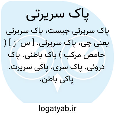 لغت نامه دهخدا پاک سریرتی. [ س َ رَ ] ( حامص مرکب ) پاک باطنی. پاک درونی. پاک سری. پاکی سریرت. پاکی باطن.