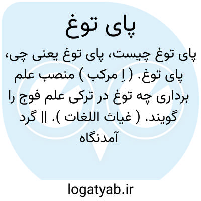 پای توغ. ( اِ مرکب ) منصب علم برداری چه توغ در ترکی علم فوج را گویند. ( غیاث اللغات ). || گرد آمدنگاه لوطیان و سر غوغایان شهری. پاتوغ. و مجازاً هرمجمعی از مجامع. و توغ نیزه ای است و بر سر آن دم اسبی منتهی بگلوله زرین.