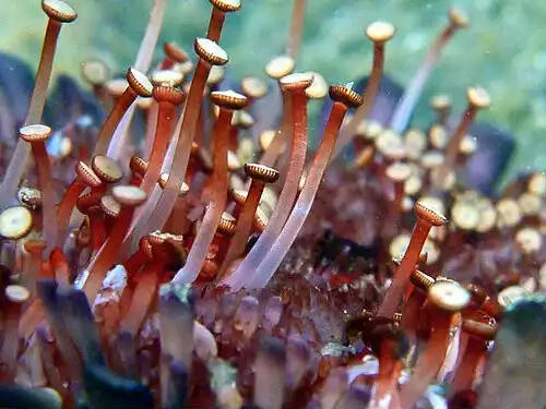 {tube foot} [اقیانوس شناسی، جانور شناسی] اندامی توخالی در خارپوستان که به مجاری آبی جاندار متصل است و برخی از انواع آن برای حرکت یا تغذیه به کار می رود