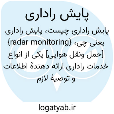 {radar monitoring} [حمل ونقل هوایی] یکی از انواع خدمات راداری ارائه دهندۀ اطلاعات و توصیۀ لازم درصورت انحراف جدی هواگرد از رد سیر (track ) مشخص شده و تداخل احتمالی شدآمد یا تقرب به کمک دستگاه از نقطۀ شروع تقرب نهایی به سمت باند