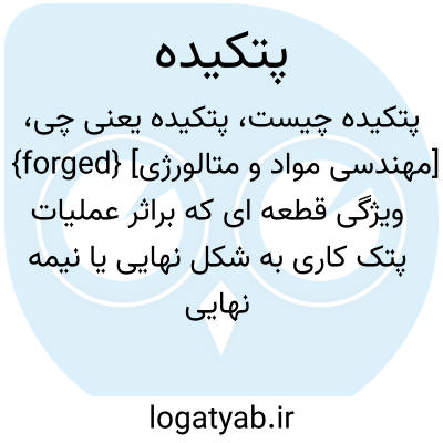 {forged} [مهندسی مواد و متالورژی] ویژگی قطعه ای که براثر عملیات پتک کاری به شکل نهایی یا نیمه نهایی درآمده است