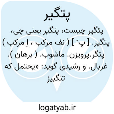 پتگیر. [ پ َ ] ( نف مرکب، اِ مرکب ) پتگر.پرویزن. ماشوب. ( برهان ). غربال. و رشیدی گوید: «یحتمل که تنگبیز باشد که چنین خوانده یعنی باریک بیز».