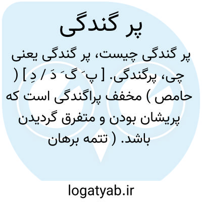 پرگندگی. [ پ َ گ َ دَ / دِ ] ( حامص ) مخفف پراگندگی است که پریشان بودن و متفرق گردیدن باشد. ( تتمه برهان ).