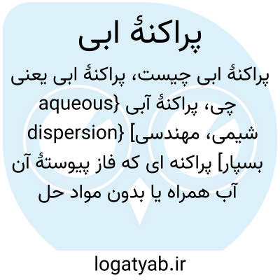 {aqueous dispersion} [شیمی، مهندسی بسپار] پراکنه ای که فاز پیوستۀ آن آب همراه یا بدون مواد حل شده در آن است