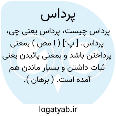 پرداس. [ پ َ] ( اِ مص ) بمعنی پرداختن باشد و بمعنی پائیدن یعنی ثبات داشتن و بسیار ماندن هم آمده است. ( برهان ). برای این دعوی شاهدی نیست، شاید مصحف و یا مجعول باشد.