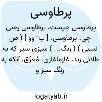 پرطاوسی. [ پ َ وو ] ( ص نسبی ) ( رنگ... ) سبزی سیر که به طلائی زند. غازماغازی. مُعَرَّق. آنکه به رنگ سبز و طلائی زند: مرکب پرطاوسی. و رجوع به طاوسی شود.