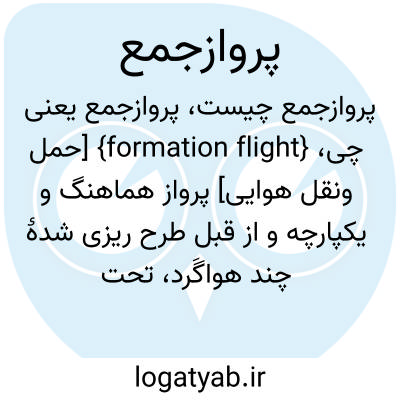 {formation flight} [حمل ونقل هوایی] پرواز هماهنگ و یکپارچه و از قبل طرح ریزی شدۀ چند هواگَرد، تحت رهبری یک هواگَرد پیشرو