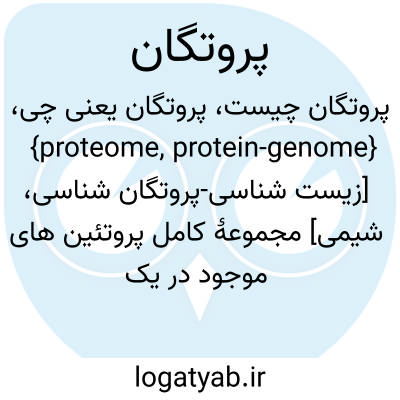 {proteome, protein-genome} [زیست شناسی-پروتگان شناسی، شیمی] مجموعۀ کامل پروتئین های موجود در یک یاخته یا اندامک یا زیریاخته یا زیراندامک و جز آن در زمانی معین