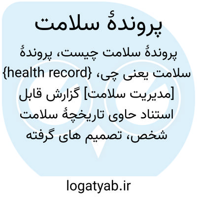 {health record} [مدیریت سلامت] گزارش قابل استناد حاوی تاریخچۀ سلامت شخص، تصمیم های گرفته شده دربارۀ او و نتایج آنها