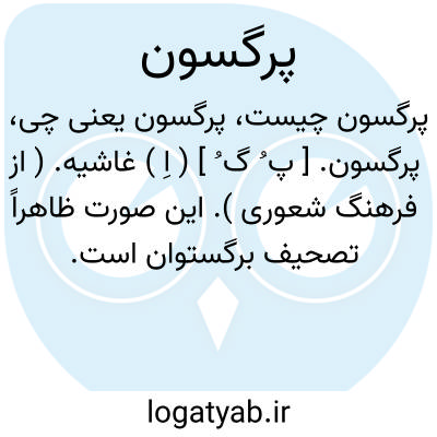 پرگسون. [ پ ُ گ ُ ] ( اِ ) غاشیه. ( از فرهنگ شعوری ). این صورت ظاهراً تصحیف برگستوان است.