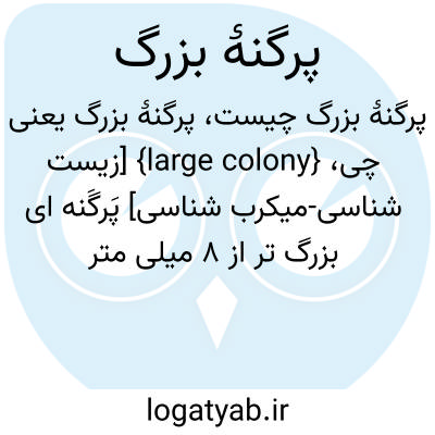 {large colony} [زیست شناسی-میکرب شناسی] پَرگَنه ای بزرگ تر از 8 میلی متر