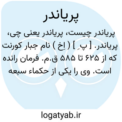 پریاندر. [ پ ِ ] ( اِخ ) نام جبار کورنت که از 625 تا 585 ق.م. فرمان رانده است. وی را یکی از حکماء سبعه یونان بشمار آرند.