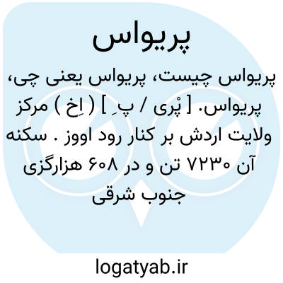 پریواس. [ پْری / پ ِ ] ( اِخ ) مرکز ولایت اردش بر کنار رود اووز. سکنه آن 7230 تن و در 608 هزارگزی جنوب شرقی پاریس واقع است.