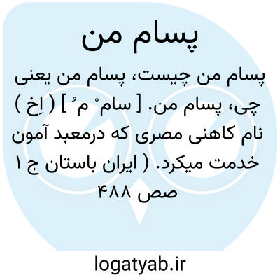 پسام من. [ سام ْ م ُ ] ( اِخ ) نام کاهنی مصری که درمعبد آمون خدمت میکرد. ( ایران باستان ج 1 صص 488 -492 ). وی هنگامی که اسکندر به آن معبد رفت با وی ملاقات کرد و گفت: که خدا پادشاه مردمان است و بنابراین هرموجودی که بر مردمان حکم میکند، موجودی الهی است. اسکندر از این عقیده بسیار مشعوف شد بخصوص که خود نیزنظری در این باب داشت.