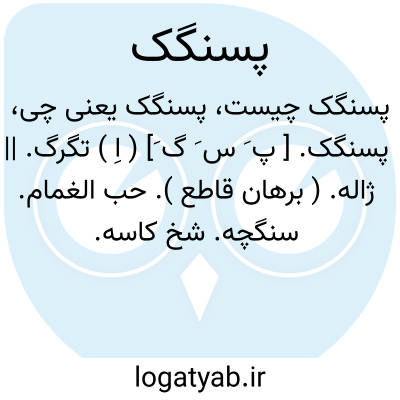 لغت نامه دهخدا پسنگک. [ پ َ س َ گ َ] ( اِ ) تگرگ. || ژاله. ( برهان قاطع ). حب الغمام. سنگچه. شخ کاسه.