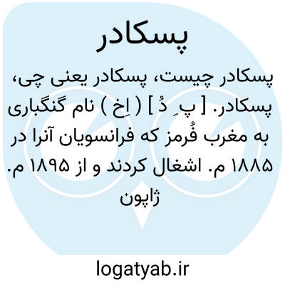 پسکادر. [ پ ِ دُ ] ( اِخ ) نام گنگباری به مغرب فُرمز که فرانسویان آنرا در 1885 م. اشغال کردند و از 1895 م. ژاپون آن را بتصرف آورد و دارای 54 هزار تن سکنه است.