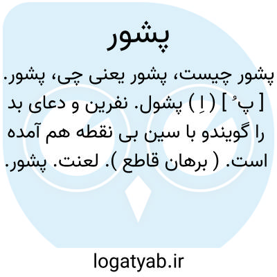 پشور. [ پ ُ ] ( اِ ) پشول. نفرین و دعای بد را گویندو با سین بی نقطه هم آمده است. ( برهان قاطع ). لعنت.