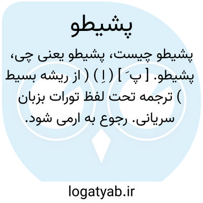 لغت نامه دهخدا پشیطو. [ پ َ ] ( اِ ) ( از ریشه بسیط ) ترجمه تحت لفظ تورات بزبان سریانی. رجوع به ارمی شود.