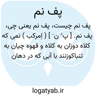 پف نم. [ پ ُ ن َ ] ( اِمرکب ) نمی که کلاه دوزان به کلاه و قهوه چیان به تنباکوزنند با آبی که در دهان گیرند. و با زدن صرف شود.
