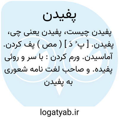 پفیدن. [ پ ُ دَ ] ( مص ) پف کردن. آماسیدن. ورم کردن: با سر و روئی پفیده. و صاحب لغت نامه شعوری به پفیدن معنی کشتن و اطفاء و خاموش کردن آتش و چراغ میدهد.