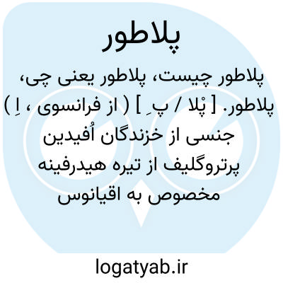 پلاطور. [ پْلا / پ ِ ] ( از فرانسوی، اِ ) جنسی از خزندگان اُفیدین پرتروگلیف از تیره هیدرفینه مخصوص به اقیانوس هند و اقیانوس کبیر غربی.