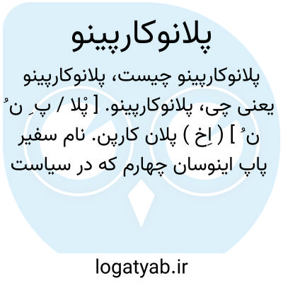 پلانوکارپینو. [ پْلا / پ ِ ن ُ ن ُ ] ( اِخ ) پلان کارپن. نام سفیر پاپ اینوسان چهارم که در سیاست خانان مغول دخالت داشته است. در شورای مذهبی که در سال 1245 م. ( 643 هَ. ق. ) در شهر لیون از بلاد فرانسه تشکیل شد چنین مقرر گردید که دو هیئت برای تبلیغ مغول و درآوردن ایشان به آئین مسیح به مغولستان فرستاده شود این مأمورین علاوه بر این وظیفه می باید مغول را بترک ظلم و جور نسبت به عیسویان دعوت کنند و دل ایشان را با خود یکی کنند. ریاست یکی از این دو هیئت با پلان کارپن بود که در قوریلتای انتخاب گیوک ( 644 هَ. ق. ) حضور یافت. هیئت دوم که از چهار نفر روحانی مرکب بود و از طرف پاپ اینوسان چهارم هم به ایشان دستورهائی داده شده بود به سمت ایران حرکت کردند تا به نزدیکترین اردوئی از مغول که رسیدند مأموریت خود راابلاغ کنند. این جماعت بعد از آنکه در راه دو نفر دیگر از روحانیین آشنا به اوضاع مشرق را هم با خود برداشتند در سال 1247م. ( 645 هَ. ق. ) از طریق تفلیس به ایران رسیدند و در این تاریخ سرداری کل قشون مغول در ایران غربی با بایجو نویان بود. مذاکرات ما بین بایجو و فرستادگان پاپ به کدورت سخت مبدل گردید چه نمایندگان عیسوی در عظمت شأن پاپ غلو کردند و گفتند که ایشان و پاپ هرگز نام خاقان مغول را نشنیده اند بلکه فقط نام قومی وحشی بگوش ایشان خورده است که از اقصای مشرق آمده و ممالکی عظیم فتح کرده و مردمانی بی شمار بقتل آورده اند. بایجو و بعضی از امرای او خواستند فرستادگان پاپ را در نتیجه این جسارت بقتل رسانند ولی بالاخره برای رعایت مقام سفارت و نمایندگی از سر خون آن عده گذشته ایشان را با دو مراسله بعنوان پاپ ودو نفر نماینده مغولی به ممالک خود روانه کردند و این دو نماینده در سال 1248 م. ( 646 هَ. ق. ) بخدمت پاپ رسیده نامه ها را رسانیدند و غرض از این سفارت دعوت پاپ بود به قبول اطاعت مغول و رفتن بخدمت خاقان واظهار تبعیت کردن. پلانو کارپینو از مسافرت خود به مغولستان شرحی نوشته است که برای فهم اوضاع جغرافیائی و تاریخ آن ایام ممالک مغول از منابع مهمه است.