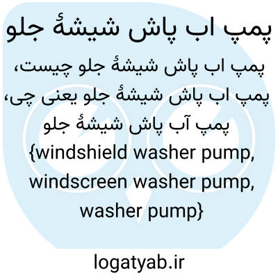 {windshield washer pump, windscreen washer pump, washer pump} [قطعات و مجموعه های خودرو] پمپی که با فشار مایع شیشه شو را به لولۀ آب پاش می فرستد