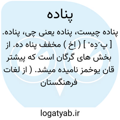 لغت نامه دهخدا پناده. [ پ َدِه ْ ] ( اِخ ) مخفف پناه ده. از بخش های گرگان است که پیشتر قان یوخمز نامیده میشد. ( از لغات فرهنگستان ).