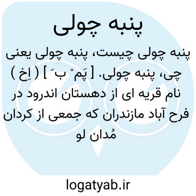 پنبه چولی. [ پَم ْ ب َ ] ( اِخ ) نام قریه ای از دهستان اندرود در فرح آباد مازندران که جمعی از کردان مُدان لو در آنجا مقیمند. ( سفرنامه مازندران و استراباد رابینو ص 13 و 120 ).