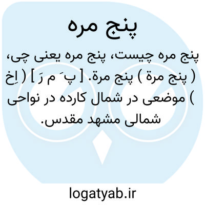 ( پنج مرة ) پنج مرة. [ پ َ م رَ ] ( اِخ ) موضعی در شمال کارده در نواحی شمالی مشهد مقدس.