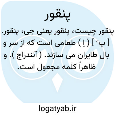 پنقور. [ پ َ ] ( اِ ) طعامی است که از سر و بال طایران می سازند. ( آنندراج ). و ظاهراً کلمه مجعول است.