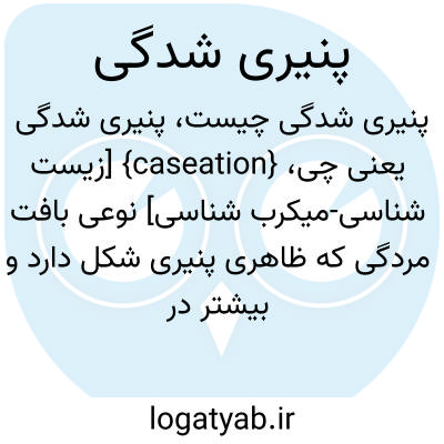 {caseation} [زیست شناسی-میکرب شناسی] نوعی بافت مردگی که ظاهری پنیری شکل دارد و بیشتر در بیماری سل دیده می شود
